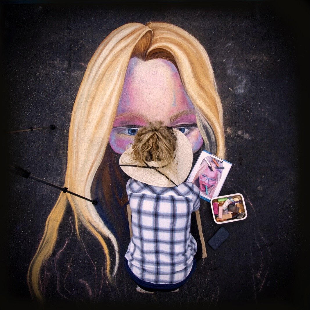 I am based in the Bay Area and studied sculpture and installation art in college. My practice has evolved over the years to focus more on public facing forms of art that can have a positive impact. I currently pursue street painting, window painting, and murals. I love these forms of art because I get to create a larger than life image in real time for the public to be able to enjoy while experiencing wonderful connections with spectators, other artists, organizers and business people in my community. In college I explored casting with untraditional materials such as paper fiber, leather and medical grade silicone as well as wood working. Being a vet’s daughter and working in the medical field has informed my work for many years, drawing insight and comparisons to the body’s amazing abilities yet fragile existence and balance within its surroundings.
